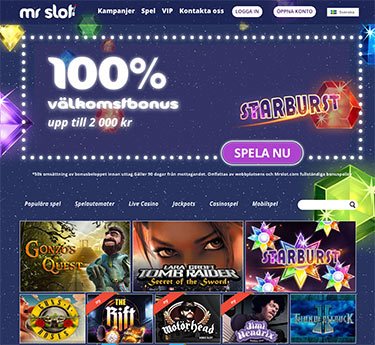 100% upp tilll 2000 kr | Heltäckande och proffsig ny casinosida på svenska. | Mr Slot recension |