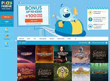 100% upp till 2000 kr + 100 free spins | Ny casinosajt med fräsch design och ett galet stort spelbibliotek. Väldigt spelvärt. | Play Frank recension |