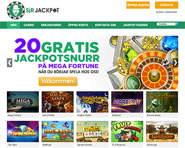 1000 free spins | Här kallas du SIR och får 20 free spins på jackpottspelet Mega Fortune efter reg! Skönt nytt casino 2016. | Sir Jackpot recension |